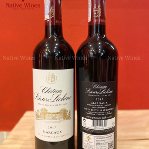 Château Prieuré-Lichine 2017 là một loại rượu vang đỏ từ vùng Margaux, Bordeaux, Pháp, với nồng độ cồn 13% và được làm từ giống nho chính là Cabernet Sauvignon, Merlot và Petit Verdot. Chai rượu này có cấu trúc cân bằng, hương thơm phức hợp của các loại quả mọng chín, gia vị, gỗ sồi và có tiềm năng lão hóa cao.