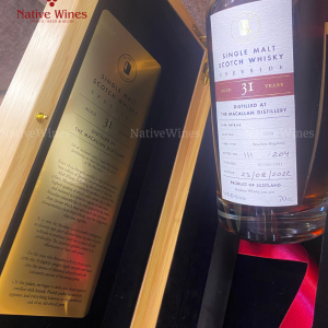 Một chai Macallan ủ 31 năm là một sự chiều chuộng tuyệt vời – một linh hồn quý hiếm được trao ba thập kỷ để thiền định trong sự yên bình lặng lẽ, để rồi đạt đến chiều sâu của sự thấu suốt. Màu vàng óng ánh của rượu là minh chứng rõ ràng cho thời gian được sử dụng một cách trọn vẹn và ý nghĩa.